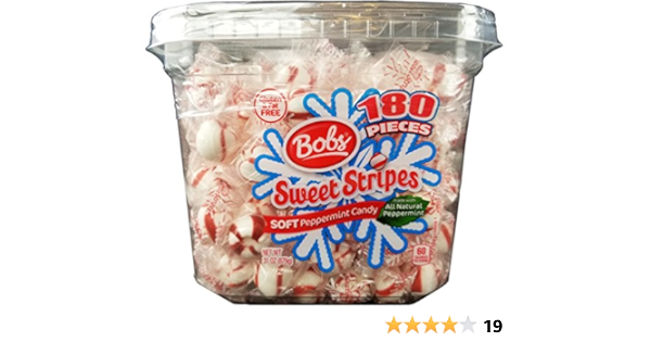Bob's sweet stripes soft peppermint candy, 350 count, 61.73 ounces.the melt away mints: We use priority mail for lighter items Bobs peppermint candy is made with all natural peppermint and is soft, always delicious and individually wrapped so that it is easy and hygienic to slip a few into your pocket to enjoy as you go. Gluten free and fat free. Bobs sweet stripes soft peppermint candy, 160 count, 28 ounce jar. 4.7 out of 5 stars. Bob's sweet stripes ~ soft peppermint candy candies ~ 34.5 oz container.